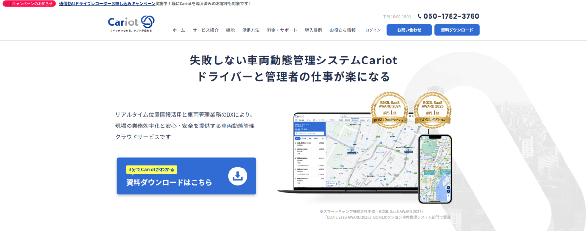 参照元:ドライバー働き方改革クラウドCariot(キャリオット)